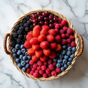 Сочная композиция из свежих ягод в лукошке