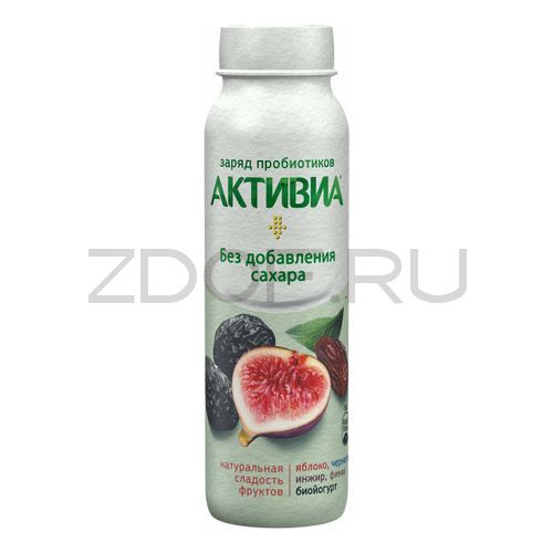 - Биойогурт питьевой обогащенный Активиа 2% яблоко-чернослив-инжир-финик 260г бут.